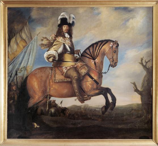 Keywords: Porträtt. Ryttarporträtt. Carl Gustaf Wrangel till häst. Klöcker Ehrenstrahl - Skoklosters slott - 73494.tif Carl Gustaf Wrangel plain text Oljemålning på duk rentouillerad på 1700- eller 1800-talet På baksidan med svart färg E En PSN 2 På vit etikett nedtill t v under ramen skrivet med svart bläck Grefve Carl Gustaf Wrangel Svea Rikes Marsk ca 1830 Ramlistens bredd 145mm På ramen profilbild med svart färg av en man samt avhuggen text med svart färg på baksidan av ramen upptill och nedtill <br/><br/>Equestrian portrait of Carl Gustaf Wrangel The painting was executed by Ehrenstrahl during his stay at Wrangels residence in Wolgast This is one of the earliest equestrian portraits painted in this composition with a non-royal person and we know from Wrangels correspondence with Ehrenstrahl at the time that he was so pleased with the result that he had Jeremias Falck make an engraving in 1655 The sword and pistols worn by Wrangel on the portrait are still in the Wrangel armoury at Skokloster Castle today <br/><br/>Helfigur till häst fas höger kroppen profil höger Kyller och harnesk spetskrage svart hatt med vita och blå plymer i högra handen dragen värja I bakgrunden stridsscen Signerad David Klöker fecit Ao 1652 utförd i Wolgast Kilad spännram inristat X Förgylld 1800-tals ram med smala pastellageblad i hörnen ristat på baksidan XXVII XXVIII XXV original caption Porträtt Ryttarporträtt Carl Gustaf Wrangel till häst Klöcker Ehrenstrahl 1652 oil on canvas size mm 3160 3090 SKO Carl Gustaf Wrangel place of origin original filename sm_t08445_698 21990 inventory number SKO 698 73494 PD Samuel Uhrdin Samuel Uhrdin Portrait paintings Media contributed by LSH unmatched creator Media contributed by LSH tag as oil on canvas Media contributed by LSH 2013-10 |
