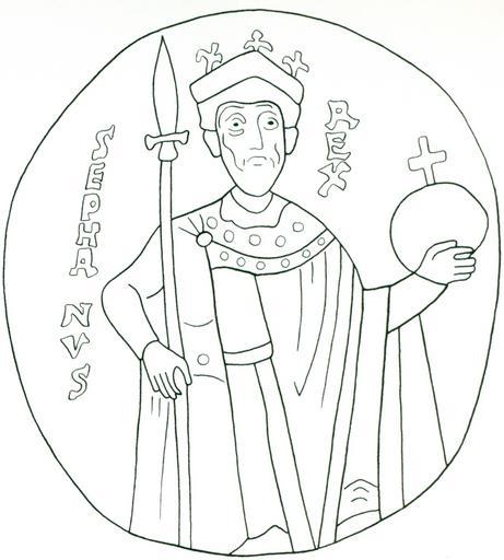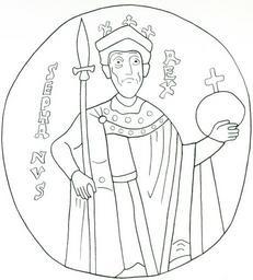Keywords: Portrayal of Stephen I of Hungary on the coronation pall-2.jpg author 1031 textile embroidery scheme object history credit line accession number own scanned by Szilas from A magyar Szent Korona by Tóth Endre Szelényi Károly Kossuth 2000 Budapest PD-old-100 Coronation pall of Hungary |