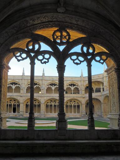 Keywords: portugal lisbon monastery hieronymite arcades column cloister architecture manueline style