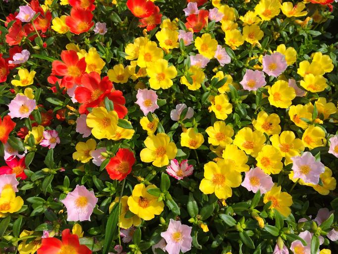 Keywords: portulaca keen flowers orange pink yellow mix lot green leaf species umikaze park yokosuka japan