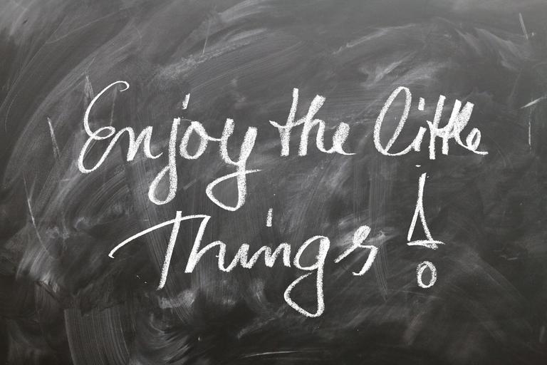 Keywords: positive think saying small things subtleties joy look forward board font confirmation strengthen task continue stand up courage summon up chalk leave blackboard teaching slate learn