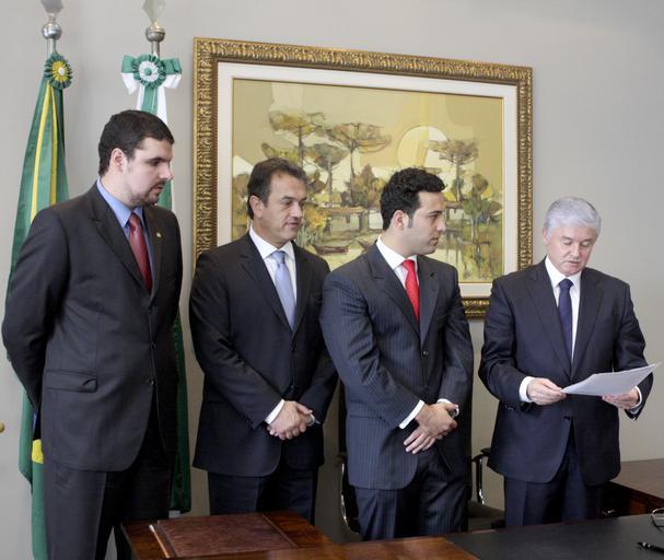 Keywords: posse groupshot people indoor Deputados Pedro Lupion (DEM), Plauto Miró (DEM), Bernardo Ribas Carli (PSDB) e Valdir Rossoni (PSDB) Foto: Nani Gois Deputados Pedro Lupion (DEM), Plauto Miró (DEM), Bernardo Ribas Carli (PSDB) e Valdir Rossoni (PSDB) Foto: Nani Gois |