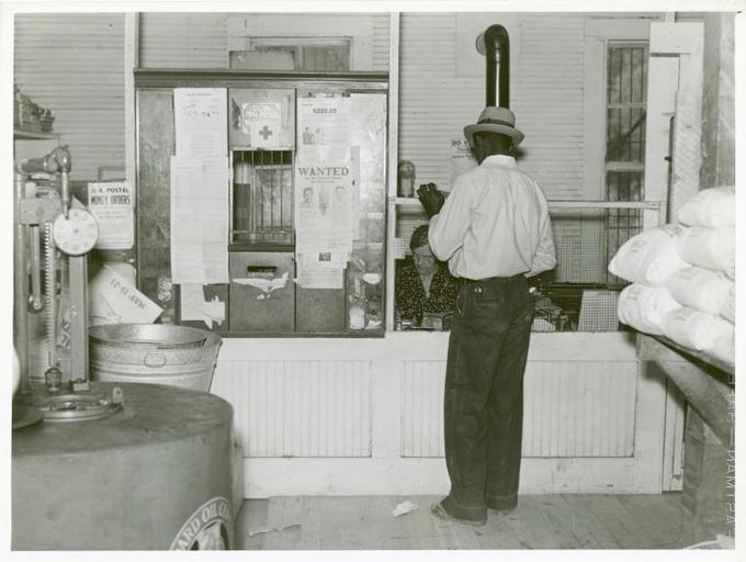 | Keywords: new york public library newyorkpubliclibrary dc:identifier=http://digitalgallery.nypl.org/nypldigital/id?1260042 dc:identifier=httpdigitalgallerynyplorgnypldigitalid1260042 xmlns:dc=http://purl.org/dc/elements/1.1/ xmlns:dc=httppurlorgdcelements11 dc:coverage=1939 african american men africanamericanmen plantation life plantationlife post offices postoffices mississippi stores shops depression era depressionera Digital ID: 1260042. Post office inside plantation store, Mileston, Mississippi Delta, November 1939.. Wolcott, Marion Post -- Photographer. November 1939 Notes: Original negative #: 52546-D Source: Farm Security Administration Collection. / Mississippi. / Marion Post Wolcott. (more info) Repository: The New York Public Library. Schomburg Center for Research in Black Culture. Photographs and Prints Division. See more information about this image and others at NYPL Digital Gallery. Persistent URL: digitalgallery.nypl.org/nypldigital/id?1260042 Rights Info: No known copyright restrictions; may be subject to third party rights (for more information, click here) Digital ID: 1260042. Post office inside plantation store, Mileston, Mississippi Delta, November 1939.. Wolcott, Marion Post -- Photographer. November 1939 Notes: Original negative #: 52546-D Source: Farm Security Administration Collection. / Mississippi. / Marion Post Wolcott. (more info) Repository: The New York Public Library. Schomburg Center for Research in Black Culture. Photographs and Prints Division. See more information about this image and others at NYPL Digital Gallery. Persistent URL: digitalgallery.nypl.org/nypldigital/id?1260042 Rights Info: No known copyright restrictions; may be subject to third party rights (for more information, click here) Digital ID: 1260042. Post office inside plantation store, Mileston, Mississippi Delta, November 1939.. Wolcott, Marion Post -- Photographer. November 1939