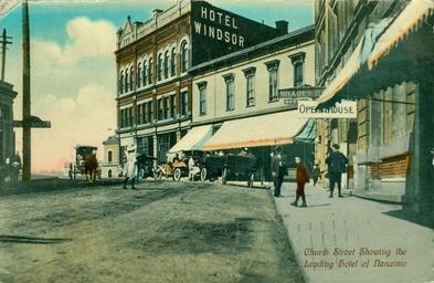 Keywords: outdoor "Church Street Showing the Leading Hotel of Nanaimo" View looking NE up the 000-block of Church Street in Nanaimo, BC on Vancouver Island. "Church Street Showing the Leading Hotel of Nanaimo" View looking NE up the 000-block of Church Street in Nanaimo, BC on Vancouver Island. |