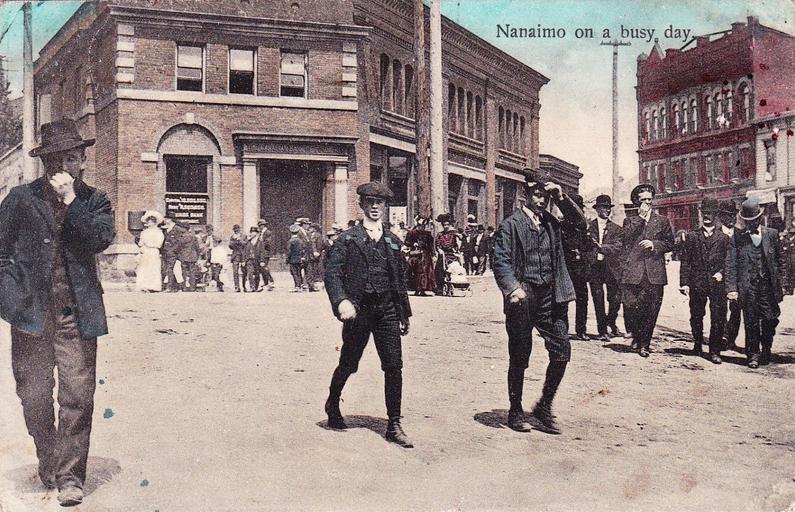 Keywords: outdoor "Nanaimo on a busy day." Canadian Souvenir Post Card. Published for A. C. van Houten, Nanaimo, B. C. Warwick Bro's & Rutter, Limited, Publishers, Toronto. View looking north up Commercial Street from the 200-block and into the 000-block of Church Street (right) in Nanaimo, BC on Vancouver Island. "Nanaimo on a busy day." Canadian Souvenir Post Card. Published for A. C. van Houten, Nanaimo, B. C. Warwick Bro's & Rutter, Limited, Publishers, Toronto. View looking north up Commercial Street from the 200-block and into the 000-block of Church Street (right) in Nanaimo, BC on Vancouver Island. |