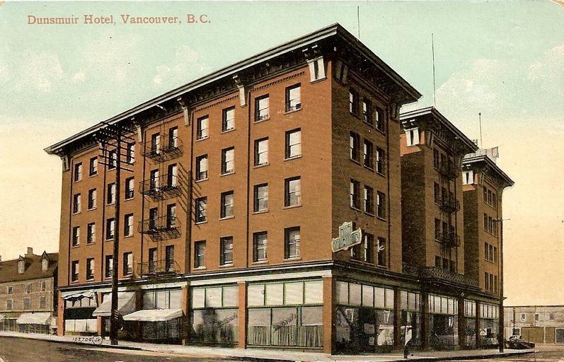 | Keywords: architecture building outdoor photo border "Dunsmuir Hotel, Vancouver, B.C." The Valentine & Sons' Publishing Co., Ltd. Montreal and Toronto. Printed in Great Britain. Dunsmuir Hotel, 502 Dunsmuir Street (SW corner of Dunsmuir and Richards Streets), Vancouver, BC. Built 1908. Extant as Dunsmuir International Village Student Housing. Architect: John Edmeston Parr and Thomas Arthur Fee. Used as military barracks during the Second World War. Salvation Army from 1950 to 2003. "Dunsmuir Hotel, Vancouver, B.C." The Valentine & Sons' Publishing Co., Ltd. Montreal and Toronto. Printed in Great Britain. Dunsmuir Hotel, 502 Dunsmuir Street (SW corner of Dunsmuir and Richards Streets), Vancouver, BC. Built 1908. Extant as Dunsmuir International Village Student Housing. Architect: John Edmeston Parr and Thomas Arthur Fee. Used as military barracks during the Second World War. Salvation Army from 1950 to 2003. |