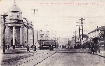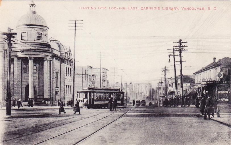 Keywords: road sketch outdoor drawing "Hasting [sic] Str. Looking East [sic], Carnegie Library, Vancouver, B. C." Private Post Card. No. 12 European Import Co. Printed in Germany. View looking west down East Hastings Street from the 200-block towards the intersection at Main Street in Vancouver, BC. "Hasting [sic] Str. Looking East [sic], Carnegie Library, Vancouver, B. C." Private Post Card. No. 12 European Import Co. Printed in Germany. View looking west down East Hastings Street from the 200-block towards the intersection at Main Street in Vancouver, BC. |