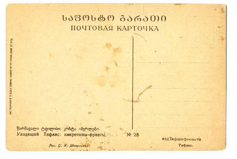 Keywords: Postcard. Imeretian Kintos. Tiflis .Schmerling. 1920s. Back dide.jpg en Postcard Imeretian Kintos Tiflis Schmerling 1920s Back dide Photo obtained at Ebay 140419926026 Creator Oskar Shmerling s 1920 left 100px thumb Front side PD-Russia-2008 Old Tbilisi by Oskar Shmerling Postcards of Tiflis Governorate |
