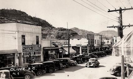 Keywords: locomotive vehicle train monochrome outdoor "Oliver B.C. AK 4" Velox Post Card. Made in Canada. AK Kalten's Studio, Osoyoos, B. C. View looking north into the 35600-block of Main Street (now Hwy. 97; Okanagan Highway) from the intersection at School Avenue in Oliver, BC. "Oliver B.C. AK 4" Velox Post Card. Made in Canada. AK Kalten's Studio, Osoyoos, B. C. View looking north into the 35600-block of Main Street (now Hwy. 97; Okanagan Highway) from the intersection at School Avenue in Oliver, BC. |