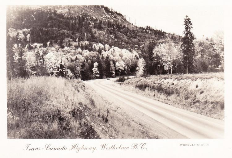 Keywords: photo border outdoor monochrome "Trans-Canada Highway, Westholme B. C. Worsley Studio" Post Card. Made in Canada. View looking north up the Trans-Canada Highway (Island Highway; Hwy. 1) at Westholme, BC on Vancouver Island near the Somenos Road junction. This stretch of the Vancouver Island TCH was then new and by-passed the old Island Highway route between Duncan and Chemainus via today's Somenos Road and Westholme Road (Hwy. 1A). "Trans-Canada Highway, Westholme B. C. Worsley Studio" Post Card. Made in Canada. View looking north up the Trans-Canada Highway (Island Highway; Hwy. 1) at Westholme, BC on Vancouver Island near the Somenos Road junction. This stretch of the Vancouver Island TCH was then new and by-passed the old Island Highway route between Duncan and Chemainus via today's Somenos Road and Westholme Road (Hwy. 1A). |