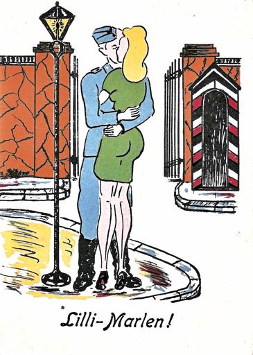 Keywords: Postkartenmotiv Paris1942 Lilli-Marleen B001.png en German Wehrmacht in France 1942 - Propaganda postcard of the army postal service from Paris 1942 with Lili Marleen motive in allusion on the famous soldier's song Lili Marleen from Lale Andersen from 1939 de Deutsche Wehrmacht in Frankreich 1942 - Propaganda-Postkarte der Deutschen Feldpost Paris 1942 mit Lili-Marleen-Motiv in Anspielung auf das berühmte Soldatenlied Lili Marleen von Lale Andersen aus dem Jahre 1939 scan of original Gefreiter Schaller drawing ;<br /> Gefreiter Beier print ;<br />Deutsche Wehrmacht - Militärbefehlshaber Frankreich - Platzkommandantur des Kommandanten von Paris Paris 1942 Publisher 1942 PD-GermanGov PD-old-70 1942 drawings 1942 in Paris German occupation in Paris Old military postcards of Germany Art styles approved by Nazi regime Postcards of people in France 1942 postcards |