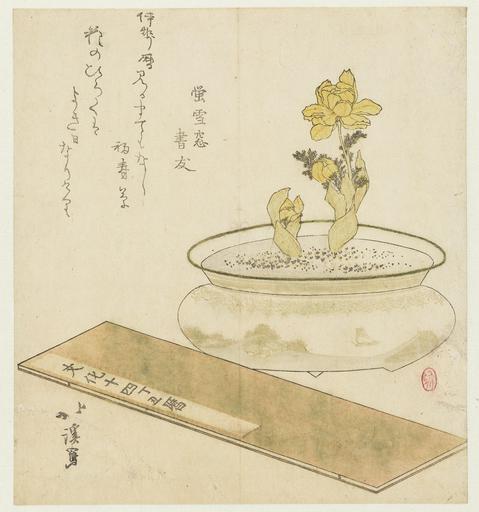 | Keywords: Pot met voorjaarsanemonen en kalenderboek-Rijksmuseum RP-P-1958-334.jpeg  accession number RP-P-1958-334 Totoya Hokkei; Totoya Hokkei died 1850; Keisetsusô Kakitomo credit line nl Een porseleinen pot met een voorjaarsanemoon en een almanac in de voorgrond De pot is gedecoreerd met een bootje dobberend op een rivier De almanac is getiteld 'Kalender voor Bunka 14 Jaar van de Os' Met één gedicht Label Line mentioned on object Totoya Hokkei 1790 - 1850 1817 kleurenhoutsnede; lijnblok in zwart met kleurblokken Collection prenten; Japan collectie blad Height mm 190 blad Width mm 174 exhibition history Institution Rijksmuseum paper object history Acquisition 1958 object type prent PD-US PD-old Data and photography rights All data and all images made available through the API are either in the public domain or are subject to a CC0 license https //www rijksmuseum nl/en/api/terms-and-conditions-of-use cc-zero place of creation Japan Forrer 268; Jap Cat III 122 http //www rijksmuseum nl/collectie/RP-P-1958-334 http //hdl handle net/10934/RM0001 COLLECT 45794 handle Pot met voorjaarsanemonen en kalenderboek Uploaded with GWToolset Rijksmuseum RP-P-1958-334 http //www rijksmuseum nl/media/assets/RP-P-1958-334 Images uploaded by Fæ Images from the Rijksmuseum Japanese 19th-century prints in the Rijksmuseum Amsterdam |