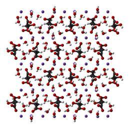 Keywords: Potassium-sodium-tartrate-tetrahydrate-xtal-3D-balls.png Ball-and-stick model of part of the crystal structure of potassium sodium tartrate tetrahydrate KNaC<sub>4</sub>H<sub>4</sub>O<sub>6</sub>·4H<sub>2</sub>O in its paraelectric phase at 105 K X-ray crystallographic data from http //dx doi org/10 1107/S1600536808005266 Acta Cryst 2008 E64 m507-m508 Model constructed in http //www crystalmaker com/ CrystalMaker 8 1 Image generated in http //accelrys com/products/discovery-studio/visualization/discovery-studio-visualizer html Accelrys DS Visualizer Own 2009-03-15 Ben Mills Benjah-bmm27 Images by Ben Mills Potassium sodium tartrate Crystal structures of organic compounds |