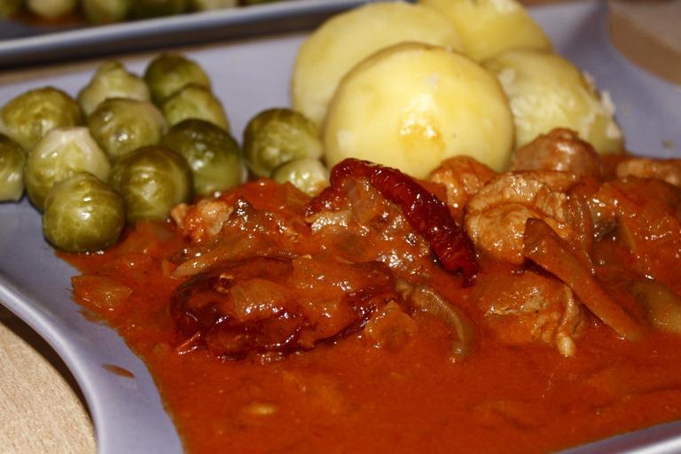 Keywords: potato goulash brussels sprouts eat food cook court meat