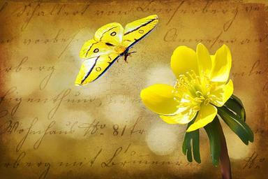 Keywords: potentilla kobold plant flower blossom bloom yellow butterfly insect animal close spring painting greeting card