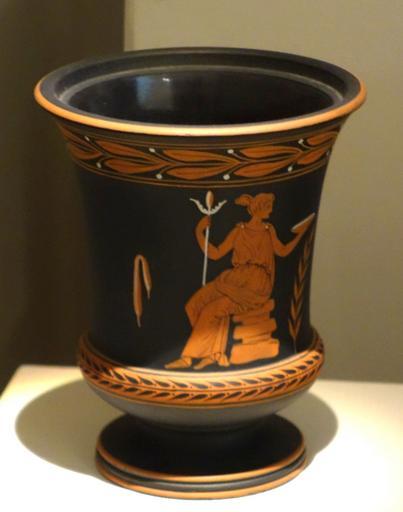 Keywords: Potpourri Vase, Josiah Wedgwood and Sons, early 19th century, black basalt with encaustic painted decoration - Chazen Museum of Art - DSC01949.JPG en Exhibit in the Chazen Museum of Art University of Wisconsin-Madison Madison Wisconsin USA This artwork is old enough so that it is in the public domain Photography was permitted in the museum without restriction 2013-07-21 13 15 31 own Daderot cc-zero Wedgwood pottery in the Chazen Museum of Art Uploaded with UploadWizard Wedgwood Black Basalt |