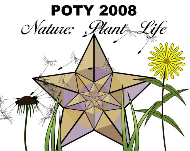 Keywords: POTY Plant life 2008.svg en Thematic prize for Picture of the Year 2008 for Nature Plant Life Own Pbroks13 17 31 17 October 2008 UTC Picture of the year barnstars SVG barnstars