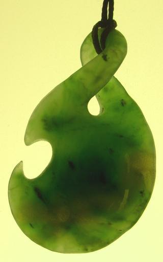 Keywords: Pounamu 6.jpg en Jade pendant Māori style Twist; NewZealand Greenstone work own Sarang 2009-11-23 Greenstone jewellery Maori pendants