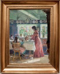 Keywords: Pouring the morning coffee, by Laurits Tuxen, with frame.jpg Artwork Creator Laurits Tuxen 1906 oil on canvas Institution Skagens Museum 359 object history Gave 1929 fra overplantor C F Dahlerup credit line own photo by Szilas in Skagens Museum Other versions Commonist PD-old Cc-zero Laurits Tuxen Coffee pouring |