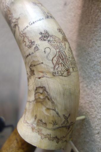 | View Original: | Powder horn with New York map, 'Dieu et mon Droit' emblem, and inscription 'Swood Ward 1761' - Huntington Museum of Art - DSC05516.JPG (3648x5472) | |||