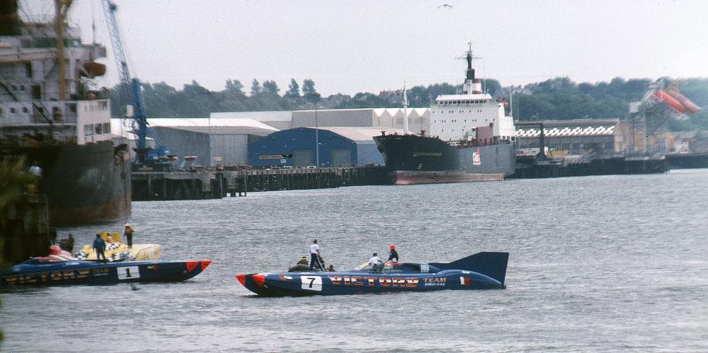 Keywords: Powerboats near Dundee port 1994 a Victory Team UAE.jpg en Power Boats at rest on River Tay near Dundee Harbour in 1994- painted in the blue livery of Team Victory from Dubai UAE 1994 own Laerol other versions 56 457179 -2 9581546666667 If I remember this was part of a powerboat gathering or event the same weekend as a gathering of hot air balloons in the city Unfortunately the only photos I have of the boats actually in action were obviously too distant for my telephoto and aren't much cop Laerol <span class signature-talk ></span> 20 37 13 July 2015 UTC cc-zero Uploaded with UploadWizard Offshore powerboat racing 1994 in Dundee Images by User Laerol |