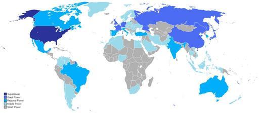 Keywords: Powers in international relations 2.png Powers in international relations legend 00008B Superpower 1E90FF Great powers 00BFFF Regional powers ADD8E6 Middle powers own Bambuway talk created this work entirely by myself 1 2009-07-30 Bambuway talk 100px en wikipedia Bambuway Original upload log en wikipedia Powers+in+international+relations png 2012-08-31 02 41 TheZcuber 1425×625× 39205 bytes <nowiki>Japan and Mexico have weakened; Australia and New Zealand have strengthened Also added a key and tweaked the colours a little bit</nowiki> 2012-05-24 20 45 Plumber 1425×625× 53321 bytes <nowiki>fixed Italy</nowiki> 2012-04-01 18 03 Phoenix B 1of3 1425×625× 53341 bytes <nowiki>remove little gray dot from japan</nowiki> 2012-04-01 18 00 Phoenix B 1of3 1425×625× 53383 bytes <nowiki>fixing incredibly minor errors off the southern coast of australia and northern canada</nowiki> 2012-03-31 21 54 Quite vivid blur 1425×625× 60130 bytes <nowiki>Corrected territories</nowiki> 2012-03-30 23 11 Phoenix B 1of3 1425×625× 53431 bytes <nowiki>show west sahara dispute</nowiki> 2012-03-30 23 06 Phoenix B 1of3 1425×625× 53433 bytes <nowiki>algeria</nowiki> 2012-03-30 23 03 Phoenix B 1of3 1425×625× 53299 bytes <nowiki>didn't load</nowiki> 2012-03-30 23 02 Phoenix B 1of3 1425×625× 53212 bytes <nowiki>romania syria ukraine malaysia singapore vietnam are all classified as middle powers http //en wikipedia org/wiki/Middle_power List_of_middle_powers see here</nowiki> 2012-03-30 22 56 Phoenix B 1of3 1425×625× 53212 bytes <nowiki>Nigeria and Morrocco are considered middle powers http //en wikipedia org/wiki/Middle_power List_of_middle_powers</nowiki> 2012-03-04 17 31 Phoenix B 1of3 1425×625× 53242 bytes <nowiki>More minor organizational changes not sure about turkey but will leave it for the moment </nowiki> 2012-03-04 17 28 Phoenix B 1of3 1425×625× 53261 bytes <nowiki>Minor island fixes</nowiki> 2012-03-03 15 15 Randam 1425×625× 48735 bytes <nowiki>According to the article about Regional Power</nowiki> 2012-02-23 03 30 Phoenix B 1of3 1425×625× 53198 bytes <nowiki>Cleanup minor</nowiki> 2012-02-22 17 33 Phoenix B 1of3 1425×625× 53221 bytes <nowiki>Restore China</nowiki> 2012-02-22 17 32 Phoenix B 1of3 1425×625× 53135 bytes <nowiki>Azores Canaries</nowiki> 2012-02-22 17 29 Phoenix B 1of3 1425×625× 53083 bytes <nowiki>somehow Taiwan got erased</nowiki> 2012-02-22 17 27 Phoenix B 1of3 1425×625× 53105 bytes <nowiki>fix south sudan border to reflect the changes made back in July</nowiki> 2012-02-22 17 21 Phoenix B 1of3 1425×625× 53079 bytes <nowiki>oops New Zealand</nowiki> 2012-02-22 17 20 Phoenix B 1of3 1425×625× 53114 bytes <nowiki>Palestinian Border</nowiki> 2012-02-13 02 43 Phoenix B 1of3 1357×628× 48913 bytes <nowiki>South Sudanese Border</nowiki> 2011-10-11 20 48 Quite vivid blur 1357×628× 48913 bytes <nowiki>No consensus or citations for the change</nowiki> 2011-09-17 12 08 Randam 1357×628× 48919 bytes <nowiki>Reverted to version as of 02 28 17 April 2011 See article at wiki</nowiki> 2011-08-13 14 41 Quite vivid blur 1357×628× 48913 bytes <nowiki>Turkey does not have the GDP nor the defence budget of major middle powers such as Spain</nowiki> 2011-04-17 02 28 Randam 1357×628× 48919 bytes <nowiki>See source at Wiki</nowiki> 2009-07-30 13 50 Bambuway 1357×628× 48913 bytes <nowiki> Powers in international relations I ~~~ created this work entirely by myself 30/07/2009 ~~~ </nowiki> __NOTOC__ Maps of international relations Maps of the world without Antarctica |