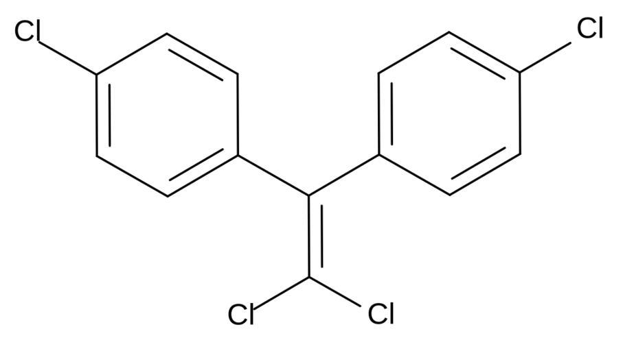 Keywords: PpDDE.svg chemical structure of p p'-DDE or 4 4'-DDE an impurity in and degradation product of DDT drawn by user Blech with BKChem 0 11 6 2007-02-19 own assumed Blech Dichlorodiphenyldichloroethylene