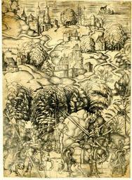 Keywords: PPW Schwäbischer Krieg.jpg Karte des Schwabenkriegs 1499; Fragment des Blatts 4 das Soldaten beim Zug durch Schwaben darstellt Im Hintergrund die Städte Markdorf Ravensburg und Buchhorn Friedrichshafen British Museum Inv 1845 0809 107 1499-1503 Monogrammist PPW von Köln PD-old thumb 200px none all sheets complete PD-old-100 History of Ravensburg Markdorf in art Swabian War Friedrichshafen in art |