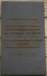 | Keywords: Praha-Smíchov-deska-Josef-Matoušek.jpg Smíchov en the Czech Republic <br /> Josef Matoušek en born January 13 1906 executed by the Nazis on November 17 1939 lived here Josef Matoušek cs 1906 1939 pamětní deska na zdi domu čp 1084 Švédská ulice čo 31 Praha- Smíchov cs <br /> Text 17 listopadu 1939 byl z tohoto domu od práce pro národ na popravu odveden PhDr Josef Matoušek docent Karlovy university<br />Nezhášejte oheň ducha I Tes 5 19 2011-12-03 own Jirka23 the house No 1084 a b c Josef Matoušek Plaques in Smíchov Švédská Prague Plaques to people in Prague Here-lived plaques in Prague World War II memorials in Prague 17 November Plaques referencing 1939 Cc-zero |