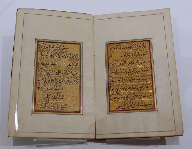 Keywords: Prayer book, calligraphy by Ahmad al-Neyrizi, Iran, 1717-1718 AD, ink, watercolour, gold on paper - Aga Khan Museum - Toronto, Canada - DSC06797.jpg en Exhibit in the Aga Khan Museum - Toronto Canada This work is old enough so that it is in the public domain Photography was permitted in the museum without restriction 2015-10-06 12 26 49 own Daderot other versions PD-old-100 cc-zero Manuscripts in the Aga Khan Museum Calligraphy in the Aga Khan Museum Ahmad al-Neyrizi |