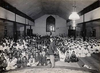 Keywords: Prayer meeting, Pyeng Yang, (s.d.) (Taylor box21num64).jpg en <br> Prayer meeting Pyeng Yang s d This is a flash-lit photo taken at the regular weekly prayer meeting in PyengYang where the average attendance is about 500 persons Date created 1908/1922 Publisher of the Digital Version University of Southern California Libraries Repository Name Methodist Church U S Legacy Record ID kda-m131 Photographer Methodist Episcopal Church Format photograph Archival file kda_Volume42/Taylor_box21num64 jpg Rights Neither the General Conference nor any General Agency of The United Methodist Church successor to the Methodist Episcopal Church claims any interest in the photos or images Part of subcollection The Reverend Corwin Nellie Taylor Collection Coverage date 1908/1922 Contributing entity University of Southern California Repository Address Nashville Tennessee Part of collection Korean Digital Archive Donor Taylor Ewing Bevard Filename Taylor_box21num64 Type images Geographic Subject City or Populated Place P'yongyang Geographic Subject Country Korea Compiler Taylor Corwin; Blood-Taylor Nellie 1908/1922 Methodist Episcopal Church http //digitallibrary usc edu/cdm/ref/collection/p15799coll48/id/761 PD-Japan-oldphoto Korean archive in the USC digital library Images from USC Digital Library uploaded by Fæ |
