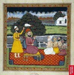 | Keywords: Prayerbook1828.jpg en Guru Nanak the founder of the Sikh religion in dispute with Hindu holy men from Rani Jindan's prayer book Lahore 1828-30 BL 1828-30 http //www columbia edu/itc/mealac/pritchett/00routesdata/1500_1599/sikhism/gurus/gurus html author PD-Art Uploaded with UploadWizard Guru Nanak Dev Jind Kaur 1820s paintings from India Paintings of men of India |