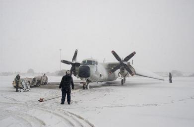 Keywords: Prearations to move a C2A Greyhound - 040213-N-0780F-057.jpg en 040213-N-0780F-057 Souda Bay Crete Greece Feb 13 2004 “ Fleet Logistics Support Squadron Four Zero VRC-40 maintenance personnel prepare to move one of their C-2A Greyhound aircraft currently assigned to USS George Washington CVN 73 into the protection of a hangar as a large snow storm hits the largest Greek Island VRC-40 is tasked with providing Carrier Onboard Delivery COD services to the Navy ™s Atlantic and Sixth Fleets VRC-40 homeported at Naval Station Norfolk Va operates the C-2A Greyhound and reports to Commander Airborne Early Warning Wing U S Atlantic Fleet U S Navy photo by Paul Farley RELEASED http //www navy mil/view_image asp id 12011 U S Navy photo by Paul Farley RELEASED 2004-02-13 PD-USGov-Military-Navy original upload log wikitable date/time username resolution size edit summary ---- 2008-10-05T15 29 17Z User Alaniaris 2287×1500 285 7Kb <nowiki> en 040213-N-0780F-057 Souda Bay Crete Greece Feb 13 2004 “ Fleet Logistics Support Squadron Four Zero VRC-40 maintenance personnel prepare to move one of their C-2A Greyhound aircraft currently assigned to USS Geor</nowiki> Images by Alaniaris/PD uploads Grumman C-2 Greyhound Military aircraft in snow Fleet Logistics Support Squadron 40 United States Navy |
