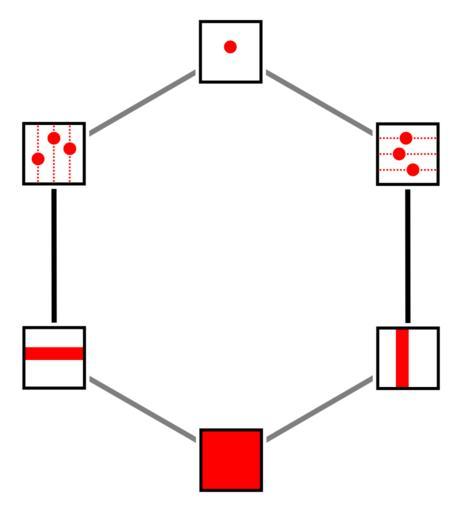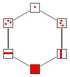 Keywords: Predicate logic; 2 variables; implications lattice.svg Implications between the A000629 2 6 statements with two variables in first-order logic represented by sketches of their logical matrices Like 100px but without the two statements that use only one variable Inkscape own 2010 mate2code Predicate logic; 2 variables; lattice Hasse diagram |