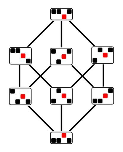 Predicate logic; 4 variables; implications lattice; ordered partitions; 0010.svg (126x155)