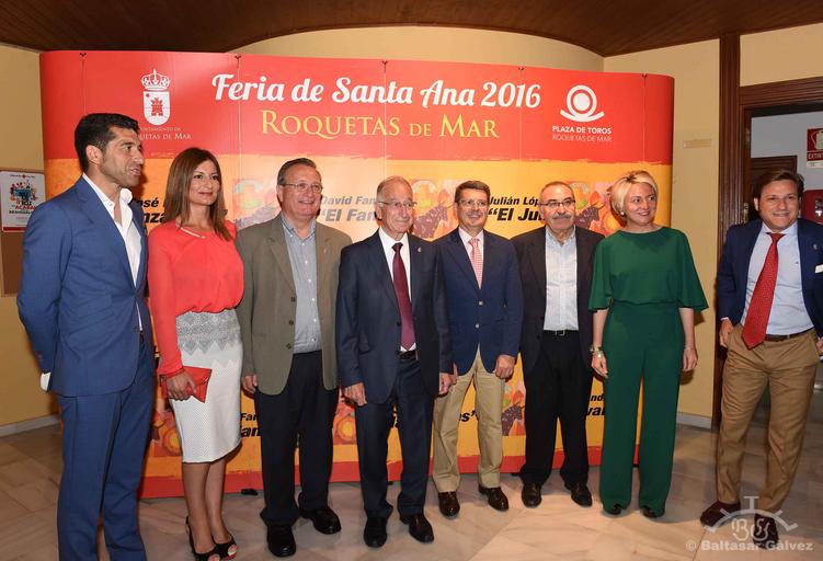 Keywords: toros roquetas de mar torosroquetasdemar tauromaquia roquetas tauromaquiaroquetas gala taurina roquetas de mar galataurinaroquetasdemar roquetas de mar roquetasdemar El Castillo de Santa Ana se vistió de gala para presentar los carteles de la Feria taurina 2016. Un acto que todos los años genera una gran expectación y que contó con la presencia de cientos de aficionados que abarrotaron el patio central del monumento, así como el equipo de Gobierno del Ayuntamiento de Roquetas, encabezados por el alcalde, Gabriel Amat, la teniente alcalde y responsable de la gestión de la Plaza de Toros, Eloísa Cabrera, y el gerente de la Plaza, Manuel Caballero. Los asistentes no fueron defraudados ante la presentación de dos carteles "de relumbrón" para los días 23 y 24 de julio. El primer día se lidiarán toros de Alcurrucén para Enrique Ponce, David Fandila “El Fandi” y Alejandro Talavante mientras que el domingo 24 de julio serán toros de Montalvo para Julián López “ El Juli”, José Mª Manzanares y Roca Rey. El abono se completa con una novillada en clase práctica para el 22 de julio y un espectáculo ecuestre el domingo 17 de julio. El Castillo de Santa Ana se vistió de gala para presentar los carteles de la Feria taurina 2016. Un acto que todos los años genera una gran expectación y que contó con la presencia de cientos de aficionados que abarrotaron el patio central del monumento, así como el equipo de Gobierno del Ayuntamiento de Roquetas, encabezados por el alcalde, Gabriel Amat, la teniente alcalde y responsable de la gestión de la Plaza de Toros, Eloísa Cabrera, y el gerente de la Plaza, Manuel Caballero. Los asistentes no fueron defraudados ante la presentación de dos carteles "de relumbrón" para los días 23 y 24 de julio. El primer día se lidiarán toros de Alcurrucén para Enrique Ponce, David Fandila “El Fandi” y Alejandro Talavante mientras que el domingo 24 de julio serán toros de Montalvo para Julián López “ El Juli”, José Mª Manzanares y Roca Rey. El abono se completa con una novillada en clase práctica para el 22 de julio y un espectáculo ecuestre el domingo 17 de julio.