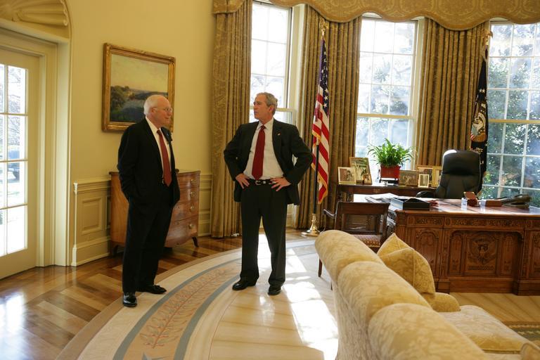 View Original:President_Bush_and_Vice_President_Cheney_in_the_Oval_Office.jpg (4992x3328)