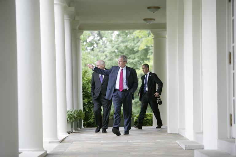 View Original:President_Bush_and_Vice_President_Cheney_Walk_Through_the_White_House_Colonnade.jpg (4992x3328)