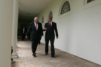View Original:President_Bush_and_Vice_President_Cheney_Walk_Through_the_White_House_Colonnade.jpg (3504x2336)