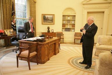 View Original:President_Bush_and_Vice_President_Cheney_in_the_Oval_Office.jpg (4992x3328)