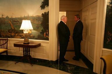 View Original:President_Bush_and_Vice_President_Cheney_in_the_Diplomatic_Reception_Room.jpg (4992x3328)