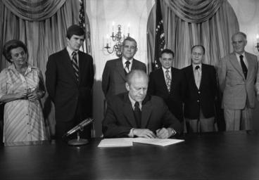 | Keywords: President Ford signs S.3735 - NARA - 7064722.jpg This photograph depicts President Gerald Ford signing S 3735 authorizing the 1976 National Swine Flu Immunization Program Also shown are l-r Department of Health Education and Welfare HEW Undersecretary Marjorie Lynch HEW Secretary F David Mathews U S Rep Tim Lee Carter R-KY Assistant Secretary for Health HEW Dr Theodore Cooper HEW General Counsel William H Taft IV and HEW Assistant General Counsel Bernard Feiner 7064722 Creator Karl Schumacher Gerald R Ford Presidential Library http //www fordlibrarymuseum gov/avproj/swineflu asp B1030-12A Institution Gerald R Ford Presidential Library 1976-08-12 Gerald R Ford Presidential Library and Museum-cooperation PD-USGov Uploaded with UploadWizard Swine Flu Program photo kit at the Gerald R Ford Presidential Library National Swine Flu Immunization Program Gerald Ford in 1976 Marjorie Lynch F David Mathews Tim Lee Carter Theodore Cooper William H Taft IV Bernard Feiner |