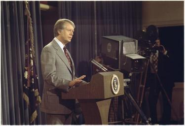 | Keywords: President Jimmy Carter, first press conference - NARA - 173605.tif Scope and content General notes 173605 Local identifier President 1977-1981 Carter White House Staff Photographers 01/20/1977 - 01/20/1981 Jimmy Carter Library NLJC 441 Freedom Parkway Atlanta GA 30307-1498 1977-02-08 Record group Collection JC-WHSP Carter White House Photographs Collection 01/20/1977 - 01/22/1981 Record group ARC 1120 Carter White House Photographs Presidential compiled 01/20/1977 - 01/22/1981 Series ARC 173341 File unit First Press Conference 02/08/1977 - 02/08/1977 File unit ARC 173604 Variant control numbers NAIL Control Number NLC-WHSP-C-00248-8 yes Other versions NARA-cooperation PD-USGov Press conferences in the White House Jimmy Carter |