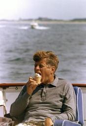 | Keywords: President Kennedy with ice cream cone, 31 August 1963.jpg President Kennedy aboard the Honey Fitz off Hyannis Port Massachusetts John F Kennedy Presidential Library and Museum Boston http //www jfklibrary org/Asset+Tree/Asset+Viewers/Image+Asset+Viewer htm guid A79F21C4-023E-47C8-8B41-F59517738D1D type Image 1963-08-31 Cecil Stoughton White House John F Kennedy in 1963 People with ice cream cones Hyannis Port Massachusetts PD-USGov | ||||
