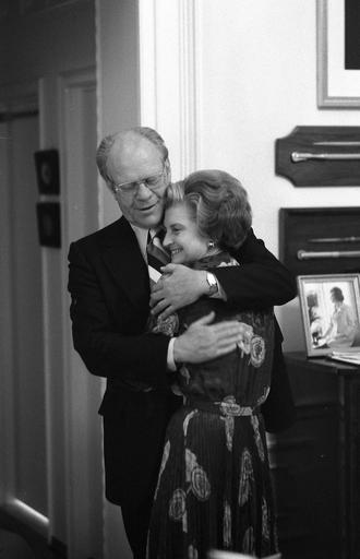 | Keywords: President and Mrs. Ford as they watch the election returns - NARA - 7027908.jpg President Gerald Ford and First Lady Betty Ford offer each other comfort as they watch the election returns 7027908 Creator David Hume Kennerly Gerald R Ford Presidential Library http //www fordlibrarymuseum gov/avproj/campaign asp B2174-12 Institution Gerald R Ford Presidential Library 1976-11-02 Gerald R Ford Presidential Library and Museum-cooperation PD-USGov Uploaded with UploadWizard 1976 Campaign photo kit at the Gerald R Ford Presidential Library Betty and Gerald Ford Hugs involving politicians Gerald Ford presidential campaign 1976 Photographs by David Hume Kennerly from 1976 |