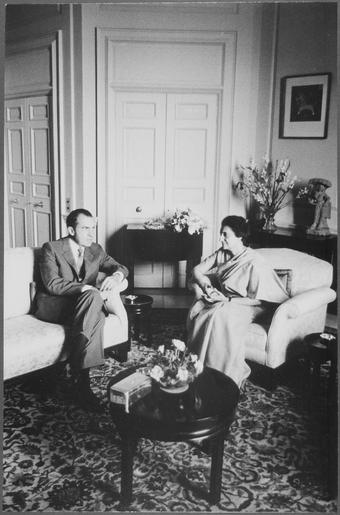 | Keywords: President Nixon meeting with Prime Minister Indira Gandhi in India - NARA - 194651.tif Scope and content Pictured Richard M Nixon Indira Gandhi Subject Heads of State - India General notes 194651 Local identifier NLRN-WHPO-1689-08 General Services Administration National Archives and Records Service Office of Presidential Libraries Office of Presidential Papers 01/20/1969 - ca 12/1974 Most Recent <br /> President 1969-1974 Nixon White House Photo Office 1969 - 1974 Most Recent NARA-Author Atkins Oliver F 1916-1977 Photographer 8451334 <br /> Richard Nixon Library NLRN 18001 Yorba Linda Boulevard Yorba Linda CA 92886 1969-08-07 Record group Collection RN-WHPO White House Photo Office Collection Nixon Administration 01/20/1969 - 08/09/1974 Record group ARC 1179 Nixon White House Photographs compiled 01/20/1969 - 08/09/1974 documenting the period 08/08/1968 - 08/09/1974 Series ARC 194277 File unit File unit ARC Variant control numbers NAIL Control Number NLNP-WHPO-MPF-1689 08 yes Other versions NARA-cooperation PD-USGov Indira Gandhi in 1969 Richard Nixon with national leaders Visits by American politicians to India Photographs by Ollie Atkins |
