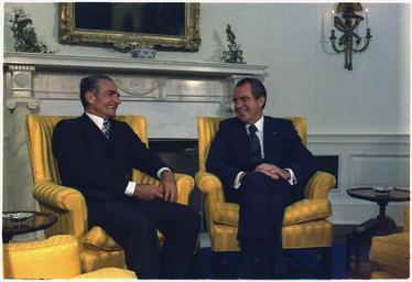 | Keywords: President Nixon and the Shah of Iran in the Oval Office - NARA - 194536.tif Scope and content Pictured Shahinshah Reza Pahlavi Richard M Nixon Subject Heads of State - Iran General notes 194536 Local identifier NLRN-WHPO-E1240C-11A General Services Administration National Archives and Records Service Office of Presidential Libraries Office of Presidential Papers 01/20/1969 - ca 12/1974 Most Recent <br /> President 1969-1974 Nixon White House Photo Office 1969 - 1974 Most Recent NARA-Author Knudsen Robert L Robert LeRoy 1929-1989 Photographer 8451337 <br /> Richard Nixon Library NLRN 18001 Yorba Linda Boulevard Yorba Linda CA 92886 1973-07-24 Record group Collection RN-WHPO White House Photo Office Collection Nixon Administration 01/20/1969 - 08/09/1974 Record group ARC 1179 Nixon White House Photographs compiled 01/20/1969 - 08/09/1974 documenting the period 08/08/1968 - 08/09/1974 Series ARC 194277 File unit File unit ARC Variant control numbers NAIL Control Number NLNP-WHPO-MPF-E1240C 11A yes Other versions NARA-cooperation PD-USGov Richard Nixon in the Oval Office Mohammad Reza Pahlavi White House in 1973 Richard Nixon in 1973 |