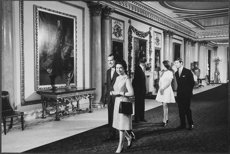 | Keywords: President Nixon visiting Buckingham Palace with Britain's royal family - NARA - 194606.tif Scope and content Pictured Richard M Nixon Queen Elizabeth II Prince Phillip Princess Anne Prince Charles Subject European Trip - 1969 General notes 194606 Local identifier NLRN-WHPO-0361-11 General Services Administration National Archives and Records Service Office of Presidential Libraries Office of Presidential Papers 01/20/1969 - ca 12/1974 Most Recent <br /> President 1969-1974 Nixon White House Photo Office 1969 - 1974 Most Recent NARA-Author Atkins Oliver F 1916-1977 Photographer 8451334 <br /> Richard Nixon Library NLRN 18001 Yorba Linda Boulevard Yorba Linda CA 92886 1969-02-24 Record group Collection RN-WHPO White House Photo Office Collection Nixon Administration 01/20/1969 - 08/09/1974 Record group ARC 1179 Nixon White House Photographs compiled 01/20/1969 - 08/09/1974 documenting the period 08/08/1968 - 08/09/1974 Series ARC 194277 File unit File unit ARC Variant control numbers NAIL Control Number NLNP-WHPO-MPF-0361 11 yes Other versions NARA-cooperation PD-USGov Queen Elizabeth II and Richard Nixon Elizabeth II of the United Kingdom in 1969 Richard Nixon in foreign countries Prince Philip Duke of Edinburgh in 1969 Charles Prince of Wales People in Buckingham Palace Photographs by Ollie Atkins |