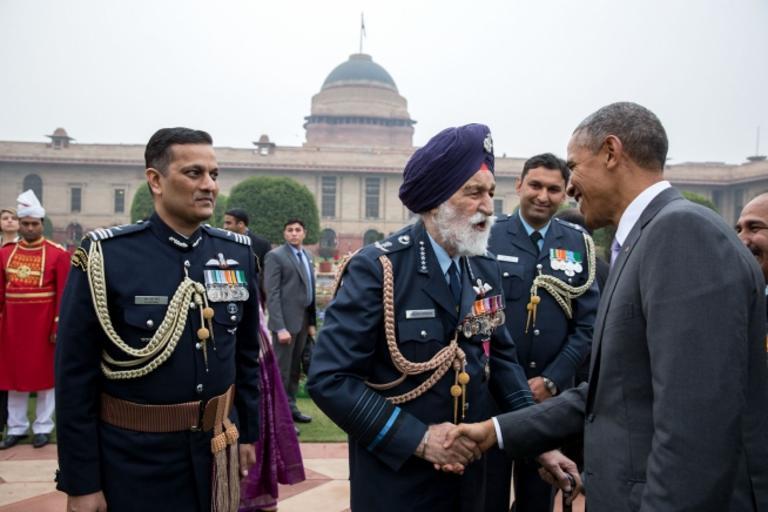 Keywords: President Obama greets Arjan Singh, Marshal of the Indian Air Force.jpg en President Obama greets Arjan Singh Marshal of the Indian Air Force at the At Home Reception on the Central Lawn of Mughal Garden in New Delhi 2015-01-26 http //www whitehouse gov/photos-and-video/photogallery/president-barack-obamas-trip-india Creator Pete Souza other versions PD-USGov People of the Indian Air Force 20150126000000 Arjan Singh 20150126000000 Barack Obama in January 2015 20150126000000 Barack Obama in India 20150126000000 Photographs by Pete Souza 20150126000000 Uploaded with UploadWizard |
