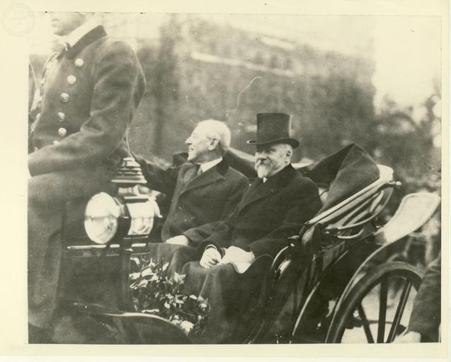 Keywords: president wilson paris peace conference france raymond poincare parade monochrome Local Accession Number: 181 Description: Wilson and President Poincare on parade in Paris, France. Wilson became the first president to leave the United States while in office when he traveled to France in December, 1918. Photographer: Unknown Source: Research Library, 20th Century Fox Size: 8x10 Medium: Print, Black and White Date: 1918 Local Accession Number: 181 Description: Wilson and President Poincare on parade in Paris, France. Wilson became the first president to leave the United States while in office when he traveled to France in December, 1918. Photographer: Unknown Source: Research Library, 20th Century Fox Size: 8x10 Medium: Print, Black and White Date: 1918 |